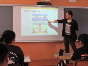 6年生の総合的な学習の時間では、キャリア教育の一環として、さまざまな業種の方からお話をうかがっています。
