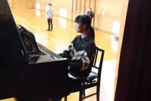 全校での合唱を練習しました。指揮、伴奏(2人)は子どもたちです。