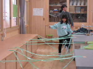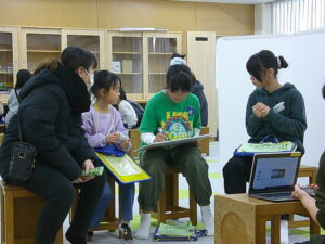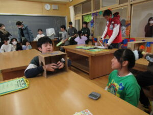 受け付けの人、説明する人、誘導する人等、役割をもらいながらお客さんに説明して楽しんでもらうように頑張りました。
