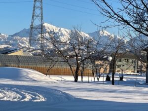 学校の周りは、雪が積もりました。1月7日の様子を校長室から撮影しました。