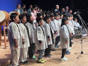 「子ども芸能祭」は、魚沼響きの森文化会館で行われました。例年通り3年生が「大の阪」の歌を披露しました。大の阪の会の方の熱心なご指導のおかげで、練習を積んだ成果を発揮することができました。宇賀地小学校(踊り)、堀之内中学校(歌・しの笛・太鼓)のみなさんと力を合わせ、迫力ある発表になりました。