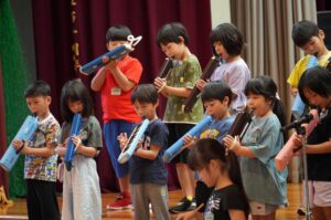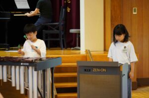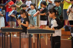 また、合奏では、自分が担当する楽器の演奏に集中し、みんなの心を一つにしてすてきな音色を響かせていました。