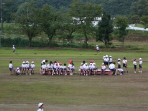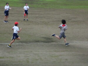 子どもたちは、慣れないコースでも、レースに集中し、息をきらしながらも自分の記録を縮めようと一生けん命に走り、頑張りました。応援の声もグラウンドにたくさん響いていました。