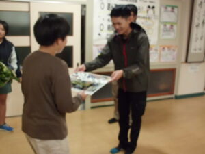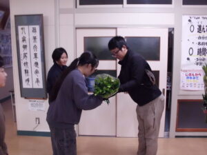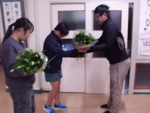毎年、JA魚沼青年部北魚沼支部の方が来校し、当校にユリの切り花を寄贈してくれています。本日の午後、例年と同じように、青年部の方が来校し、ユリの切り花を寄贈されました。学校を代表して、ボランティア委員会の児童が受け取りました。