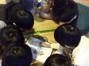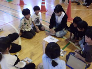 最後に、なかよし班(縦割り班)ごとに集まって船の絵に色鉛筆で色を塗る活動をしました。これは、ただやみくもに好きな色を塗るのではありません。たった今、全校で確認した「話し合いのルール」を守りながら色を塗る活動です。6年生がリーダーになり、どんな色を塗るか、話し合いながら色を決めて塗っていきました。自分の好きな色を押し通そうする人はいません。一人一人の意見に耳を傾けながら作業に取り組む子どもたちの姿がありました。簡単な塗り絵ですが、時間内に塗り終えることができない班が多くありました。それは、話し合いを丁寧にしたからこその結果であり、良い姿の表れでもありました。