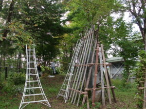 シルバー人材センターのみなさんは、ご経験が豊富で、てきぱきと作業を進められていて、半日で見事な冬囲いを完成させました。さすがです。素晴らしいです。