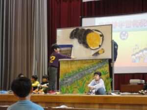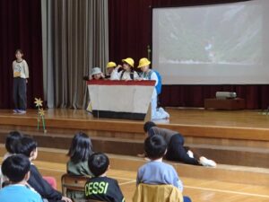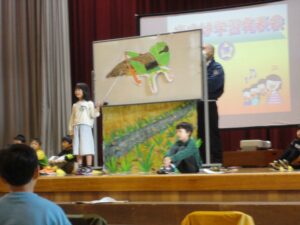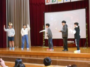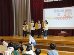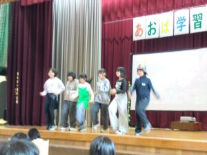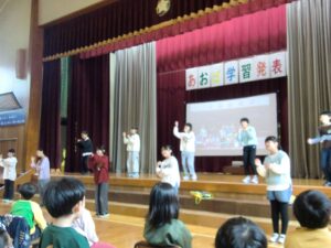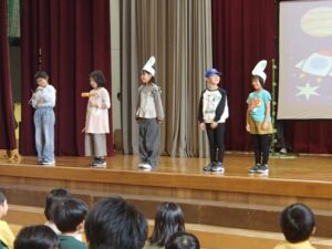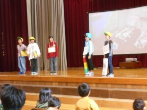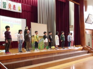 毎年感じることですが、各学年の発表は、どれも工夫されており、歌やダンス、クイズ、劇などを織り交ぜながら、ユーモアのある演出も加わり、それでいて何を学習してきたかが観る側にもよく分かる構成になっていました。各学級担任のセンスの良さとたくさんの人の前でも堂々と発表できる子どもたちの頑張りに感心するばかりです。来場された保護者や地域の方も、面白おかしく、楽しみながら学習の成果を知ることができたことと思います。