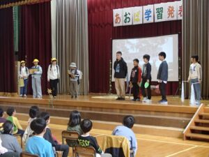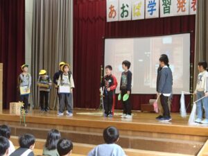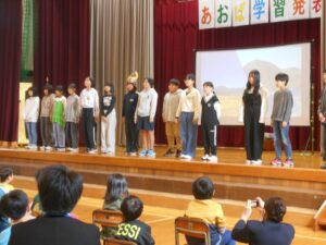 10月25日(土)、保護者や日ごろお世話になっている地域の方々を体育館にお招きし、「あおば学習発表会」を行いました。1・2年生は生活科を中心に、3~6年生は総合の学習や各教科を中心に、これまで学習してきた成果について発表しました。
