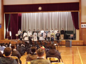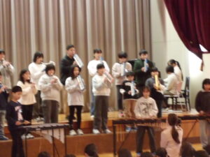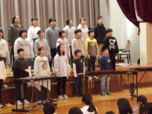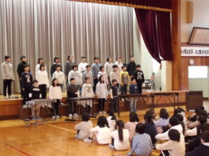 歌は2部合唱で、一人一人がしっかりと音程をとって、調和のとれたきれいな歌声を体育館いっぱいに響かせ、表情豊かに歌うことができました。歌を聴いてた1~4年生は、美しいハーモニーにうっとりしていました。合奏では、リズムをとるのが難しい曲でしたが、リズムがずれないように一人一人が指揮者に集中し、楽器が奏でる音の重なりを楽しみながら演奏することができました。