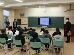 小出病院の事業の一つに、「地域医療魚沼学校」があります。これは、地域医療教育の一環として行われているもので、伊米ヶ崎小では、毎年、その講座に応募しています。今日は、その「地域医療魚沼学校」の方が来校し、6年生が、「がん予防」についてお話を聞きました。
