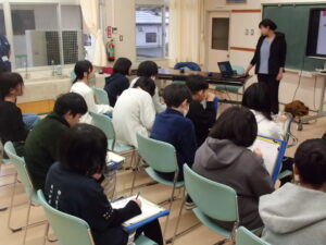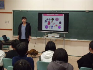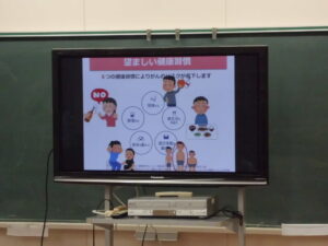 そして、「がんは遺伝子が傷ついて発生する」ということや、がんのリスクを減らすためには、「適度な運動」や「野菜を食べること」、「やせ過ぎず太りすぎにならないこと」、「タバコは吸わない」「お酒を飲みすぎない」などがあることを知り、しっかりとメモをとることができました。 また、「がん検診の必要性」についても詳しく説明していただき、「がんの早期発見がとても大切であり、そのためにも定期的な検診を受ける必要がある」ということについてもしっかりと学ぶことができました。