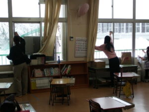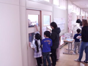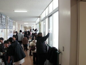 また、学習参観後に「第3回PTA環境奉仕作業(校内のガラス拭き)」が行われました。降る雪が窓ガラスにあたり、寒く冷たい中での作業でしたが、子どもたちといっしょに会話を楽しみながら校内にあるガラスの部分を丁寧に拭いていただきました。ご協力ありがとうございました。