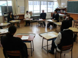 最近の子どもたちの様子や3学期の予定、参観した今日の授業、来年度のPTAの役員等について話し合いました。限られた時間の中でしたが、学校にとっても、保護者の皆様にとっても、たいへん有意義な一時となりました。雪降る中、ご参加いただきありがとうございました。