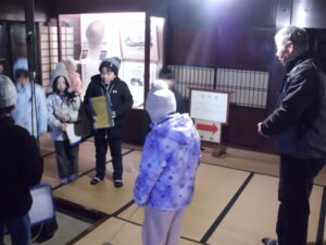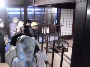 今日も朝から雪が降り、積雪が増える寒さの中での目黒邸見学となりました。畳の上は靴下を履いていてもとても冷たく、足の指の感覚がなくなりそうでした。しかし、3年生の子どもたちは、つらいとは言わずに見学に集中することができました。とても立派でした。