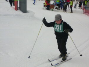 開会式等は特になく、9時30分に5年男子のレースが始まりました。15秒間隔で順番に次々と勢いよくスタートしていきます。みんな練習の成果を発揮しようと力強く滑り出していきました。