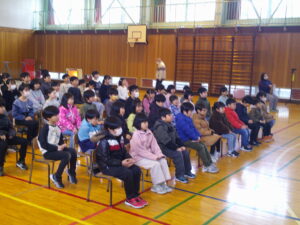「一同礼」「卒業生起立」「一同ご起立ください」「卒業生、在校生起立」「国歌斉唱」など、合図に合わせた動きを一つ一つ確認し、心と体で覚えていきました。 第1回目の全校練習と同じように、みんなとってもよく集中しており、感心しました。特に、卒業生一人一人が将来の夢を発表する場面では、ほとんどの在校生が、初めて聞く発表を真剣な表情で聞いていました。大好きなお兄さんやお姉さんが、とても身近な存在で、日頃から関わっているからこそ、その人たちの将来の夢に興味をもったのでしょう。