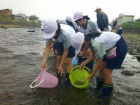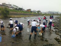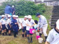 魚沼地域振興局、魚沼漁協の一環の事業に、佐梨川の学習に取り組んでいる4年生が参加しました。