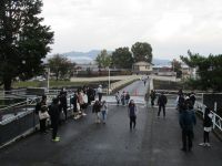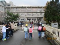 今日の朝、小出中学校から中学生が40名ほど来校し、6年生の希望した子どもたちと一緒にあいさつ運動に取り組みました。