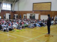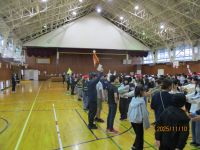 第1体育館へ避難した後、避難の様子を見ていただいた消防署の方から、ご指導いただきました。