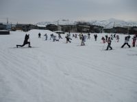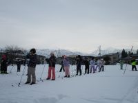 今年初めてのスキー授業のため、板の付け方やストックの持ち方なども確認して始めました。
