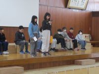 全校の前で堂々と話す姿は素晴らしく、フロアで聞いている子どもたちも真剣な表情でした。