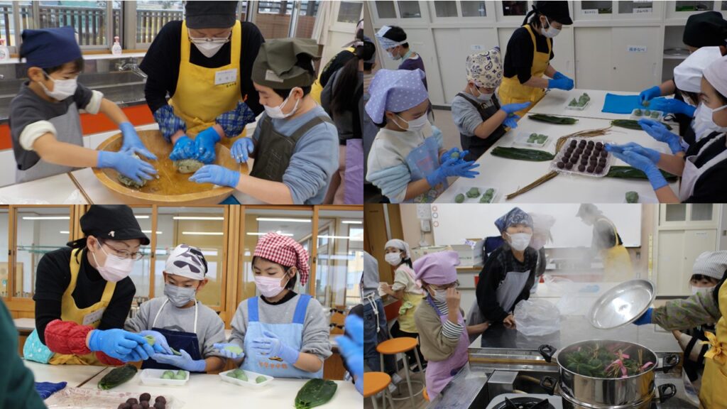 出来上がった笹団子の味は売っている笹団子以上のおいしさでした!「おいしい!」「最高!」子どもたちは自分たちで調理したこともあり、あまりのおいしさに大興奮でした。五感で学んだ笹団子づくりは長く子どもたちの記憶に残ることだと思います。茶々の会の皆様、ご協力いただきまして、誠にありがとうございました。