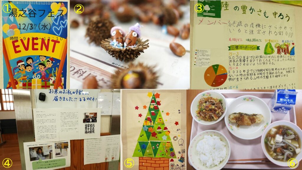 師走に入り、いよいよ2025年の授業日は残すところ2週間ほどとなりました。延期となっていた児童会行事「湯之谷フェス」は、来週17日に開催します。今回は、学校内の掲示物などから最近の学校の様子をお伝えします。