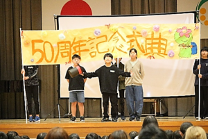 2025年10月29日 / 最終更新日時 : 2025年10月29日 higsh 日々だより 「創立50周年式典 ②」 創立50周年記念式典の第3部は、児童の学習発表会。どの学年も工夫を凝らした演出で、一人一人が輝く素敵な発表会となりました。 1年生「カラフル村の大きなかぶ…?!」 2年生「やさいパーティーでスマイル!」 3年生「広神かるたのなぞをさぐれ!」 4年生「羽根川のめぐみ~ひまわりのみんな~」 5年生「米作りの今と昔~レペゼン魚沼米!わたしたちの虹色米田朗~」 6年生「広神の宝物~本当の宝物とは…~」 Follow me! FacebookXHatenaPocketCopy