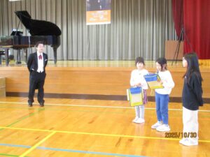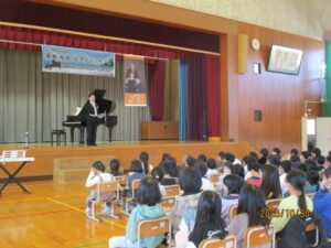 どちらのコンサートでも、ピアノのリズミカルな音色が体育館に響き渡ると、自然と子どもたちの体が左右にゆれていました。ゆったりとした曲を聴いて、「心が穏やかになりました。」と話す子もいました。