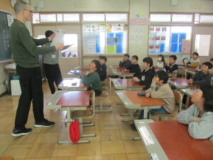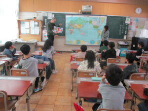 2026年3月10日 / 最終更新日時 : 2026年3月10日 higsh 日々だより 「プレ外国語活動 1・2年生」 3月9日(水)3・4限に、1・2年生対象のプレ外国語活動が行われました。 中学年から始まる外国語活動を、事前に体験する学習です。今回の活動には、ALTのエビイリイ先生と杉本先生が来てくださいました。エビイリイ先生には出身地のイギリスのこと、杉本先生にはアメリカのことを教えてもらいました。実際に写真や地図を見せてもらいながら、2つの国のことを詳しく知ることができました。 Follow me! FacebookXHatenaPocketCopy