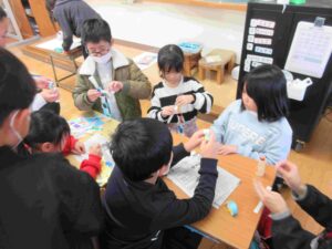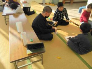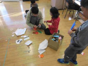 縦割り班ごとにいろいろな遊びやゲームを楽しめる場(お店)を作り、各お店を回って楽しむというものです。