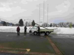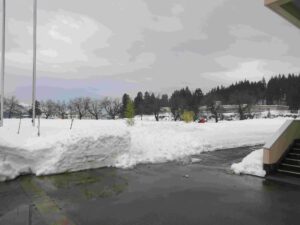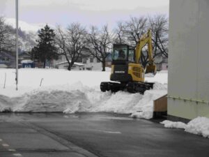 グラウンドの上り口の雪をふみ固めてもらいました。