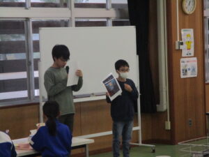 給食では、昨日から読書旬間に合わせた「本とコラボ給食」が始まっています。昨日は「野菜のカレーライス」、今日は「フィッシュフライ」です。図書委員会の皆さんが説明をしてくれています。また、子どもたちの投票によるリクエストメニューも続々と登場します。読書の秋、食欲の秋を満喫してほしいです。