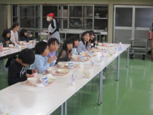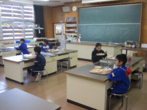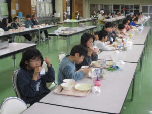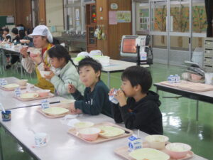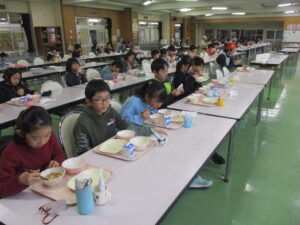 本日の給食は、ごはん、みそワンタンスープ、銀鮭の塩焼き、ツナポテトサラダ、牛乳です。ツナポテトサラダは、野菜のおかず部門で第1位、みそワンタンスープはお汁部門で第1位に入ったメニューです。そして、今日の鮭はただの鮭ではなく、銀鮭です。銀鮭の特徴は、脂乗りのよさです。そのため、身がやわらかく、ごはんも進みます。