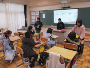 2025年12月8日 / 最終更新日時 : 2025年12月8日 suhsh 全校 第3回地域子ども会 5時間目に、各地域分かれて地域子ども会を行いました。遊び方や自転車の乗り方、冬の危険個所などの確認を行いました。雪が降ったり、道路が凍結したりと、冬は危険個所が増えます。確認したことを基に、安全に登下校できるよう指導していきます。 Follow me! FacebookXBlueskyHatenaPocketCopy コメントを残す コメントをキャンセルメールアドレスが公開されることはありません。 ※ が付いている欄は必須項目ですコメント ※ 名前 ※ メール ※ サイト Δ