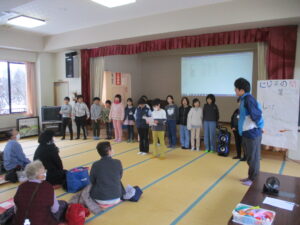 2025年12月9日 / 最終更新日時 : 2025年12月9日 suhsh 4年生 第4回にじ茶の間 本日、白石荘を会場として実施しました。地域から多くの方に参加いただき、盛大に行うことができました。4回目ともなると子どもたちの進行もだいぶスムーズになってきています。参加した皆様に喜んでもらうことができ、とても嬉しそうな子どもたちでした。 Follow me! FacebookXBlueskyHatenaPocketCopy コメントを残す コメントをキャンセルメールアドレスが公開されることはありません。 ※ が付いている欄は必須項目ですコメント ※ 名前 ※ メール ※ サイト Δ
