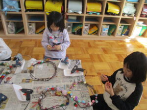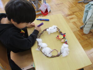 1年生が製作しているクリスマスリースですが、だいぶ賑やかになってきて完成間近です。完成したリースは、来週に越後須原駅の交流スペース「ゆきヒカリ」に飾りに行く予定です。交流スペースがクリスマスらしくなります。お時間あればぜひご覧ください。12月20日にはクリスマスコンサートも予定されています。