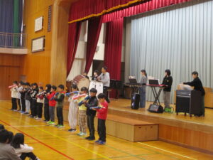 2025年12月16日 / 最終更新日時 : 2025年12月16日 suhsh 全校 音楽集会 今日の音楽集会は、5・6年生の発表でした。それぞれの学年が、様々な楽器を使った素晴らしい合奏を聴かせてくれました。また、最後に今月の歌「あわてんぼうのサンタクロース」を全校で楽しく歌いました。ご来校いただきました皆様、ありがとうございました。 Follow me! FacebookXBlueskyHatenaPocketCopy コメントを残す コメントをキャンセルメールアドレスが公開されることはありません。 ※ が付いている欄は必須項目ですコメント ※ 名前 ※ メール ※ サイト Δ