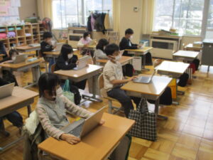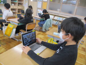 1・2年生がICT支援員の方にMEETの使い方を習いました。冬休みに家庭と学校とをつなぐ時間があります。子どもたちがスムーズにできるか、まずはそっと見守っていただければ幸いです。1年生の様子は写真を撮ることができませんでした。申し訳ありません。