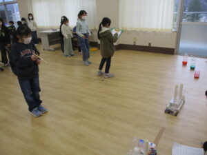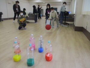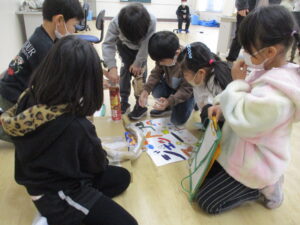 2年生がつくった遊びを1年生に紹介していました。射的、ボウリングなど楽しい遊びがたくさんでした。紹介するほうも、遊びをさせてもらうほうも、充実した時間になったようです。