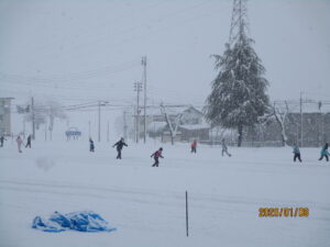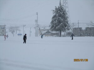 昨日とはうって変わって降雪の中の練習となりましたが、「頑張れ!」と声を掛け合ったり、拍手をしたりと、心を一つに練習に取り組んでいます。