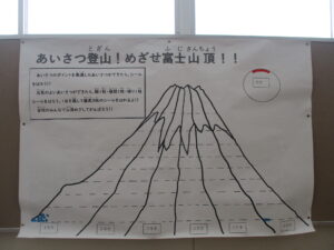 1月の生活目標は「進んであいさつしよう!元気にあいさつしよう!」です。須原小学校のあいさつが良くなるように、有志であいさつ隊を行っています。また、「あいさつ登山」の取組も行っています。ご家庭や地域でも、あいさつを意識できるよう声掛けをお願いいたします。