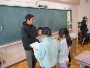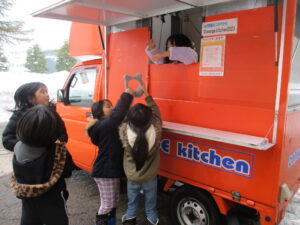 12月に入広瀬地域にまち探検に行った2年生です。今日は、その時に見付けたお店の中から2人の方に来校いただき、様々な質問をしました。「いつから始めたのですか」「なぜ始めようと思ったのですか」など、たくさんの質問をして多くの発見がありました。キッチンカーの中も見せていただき、貴重な経験となりました。