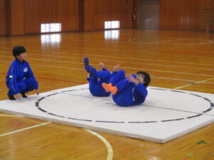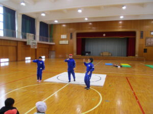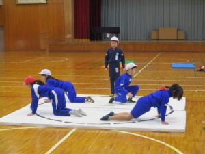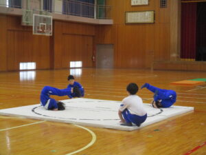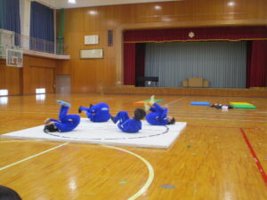 3・4年生のシンクロマットの発表会を行いました。それぞれのグループで工夫されていて素晴らしかったです。特に決めポーズが決まっていました。今日は、1・2年生も発表の様子を見に来ていました。上学年の発表を見ることで、自分たちの体育での学習にも生かしていって欲しいです。