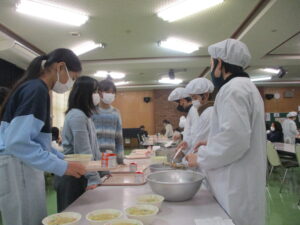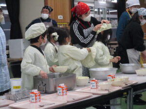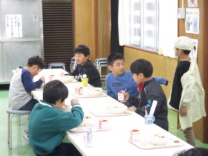 本日の給食は、ビビンバ、かに玉スープ、牛乳です。ビビンバに入っているぜんまいは、魚沼産のぜんまいです。前回より少し肉炒めの量を増やしてみました。ごはんとナムルとかき混ぜて、食べましょう。そして今日のカニ玉スープのカニは、紅ずわいがに です。本物の「かに」です。また、19日は食育の日です。食べ物に感謝して食べる意味でも、いただきます・ごちそうさまをしっかりということができるよう話がありました。