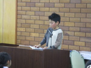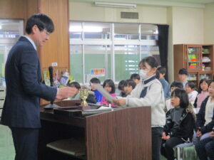 2026年1月20日 / 最終更新日時 : 2026年1月20日 suhsh 全校 全校集会 今日の全校集会は、1~6年生の代表児童の3学期の目標等の発表でした。立派な態度で発表できていました。また、聞き方も良かったです。発表に続いて、表彰を行いました。嬉しいことです。 Follow me! FacebookXBlueskyHatenaPocketCopy コメントを残す コメントをキャンセルメールアドレスが公開されることはありません。 ※ が付いている欄は必須項目ですコメント ※ 名前 ※ メール ※ サイト Δ