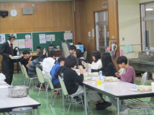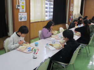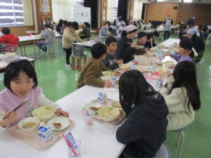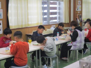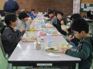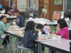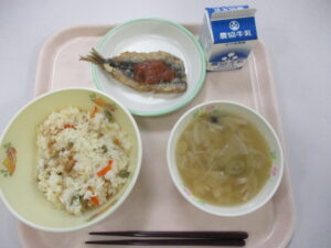 本日の給食は、こぎつねごはん、ごんのきのこ汁、いわしのもみじソース、牛乳です。今日から学校給食週間が始まります。今年の題材は、教科とのつながりです。1日目の今日は、国語を取り上げ、小学校4年生で学習する「ごんぎつね」をテーマにしました。ごんはきつねなので、こぎつねごはん、そして物語の中でごんがもってきた「いわしやきのこ」を使ったメニューになっています。国語の教科書に掲載されてから、70年を迎える物語です。久しぶりに読んでみてはいかがですか?