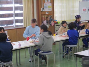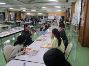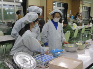 本日の給食は、ごはん、おでん、太刀魚フライ、たくあんカレマヨサラダ、いよかん、牛乳です。給食週間3日目は、算数を題材に、テーマを「いろいろな形を見つけよう」としました。太刀魚フライは、長方形、きゅうりは円、おでんの竹輪は円柱でしょうか。ほかにもたくさんの形を散りばめました。食材を切るときには、食べやすさはもちろんですが、それ以外にも、見た目のきれいさや火の通りやすさ、食べた時の食感など、様々なことを考えています。さて、みなさんは、例えばにんじんをいちょう切りや千切りにできますか?立体の形から、どう切ればいちょう切りになるでしょうか?頭の中で想像して切ってみてください。