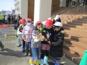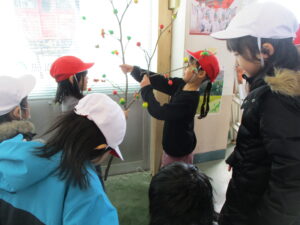 塞ノ神に向けてつくった飾り団子を今年度生活科や総合でお世話になった方のところへ届けました。1年生は駅の交流スペース、2年生は守門デイサービス、3年生は玉川酒造、4年生は白石荘です。子どもたちがつくった飾り団子を楽しみながら眺めてもらえたらなと思います。