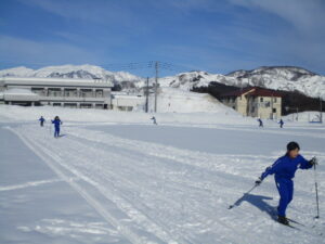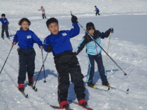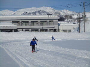 4年生がグラウンドで1kmのタイム測定を行っていました。天気が良く、暑いくらいの中でしたが、ゴール目指して一生懸命滑っていました。